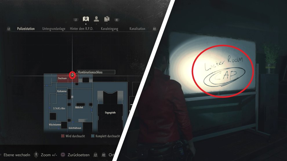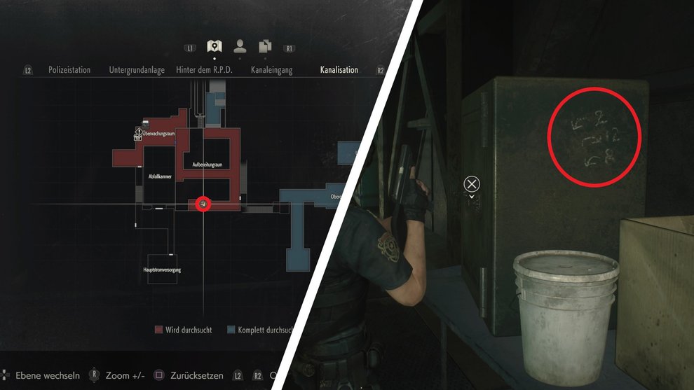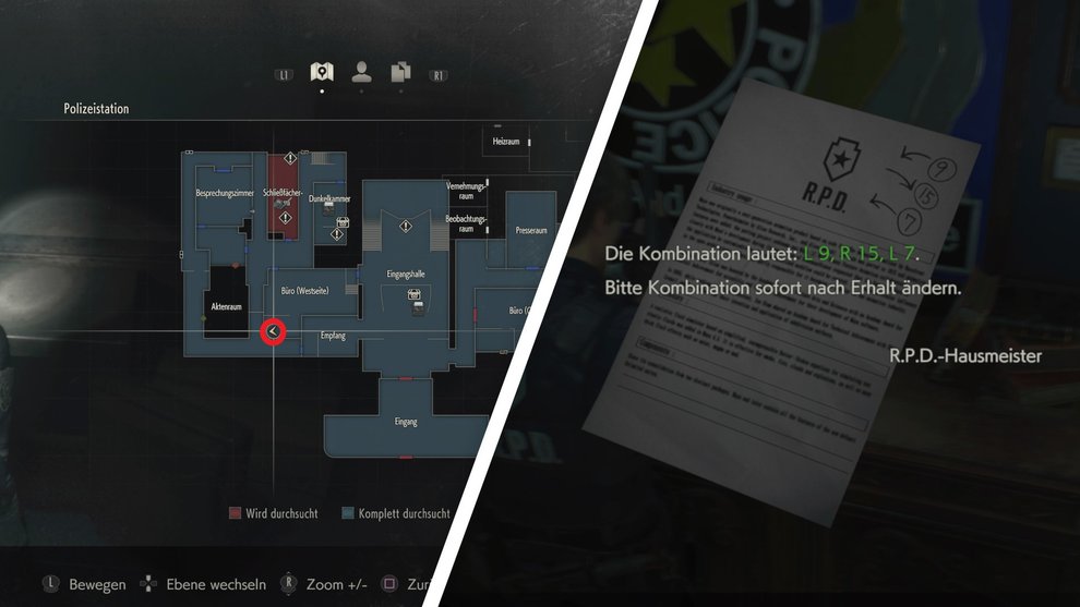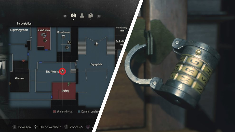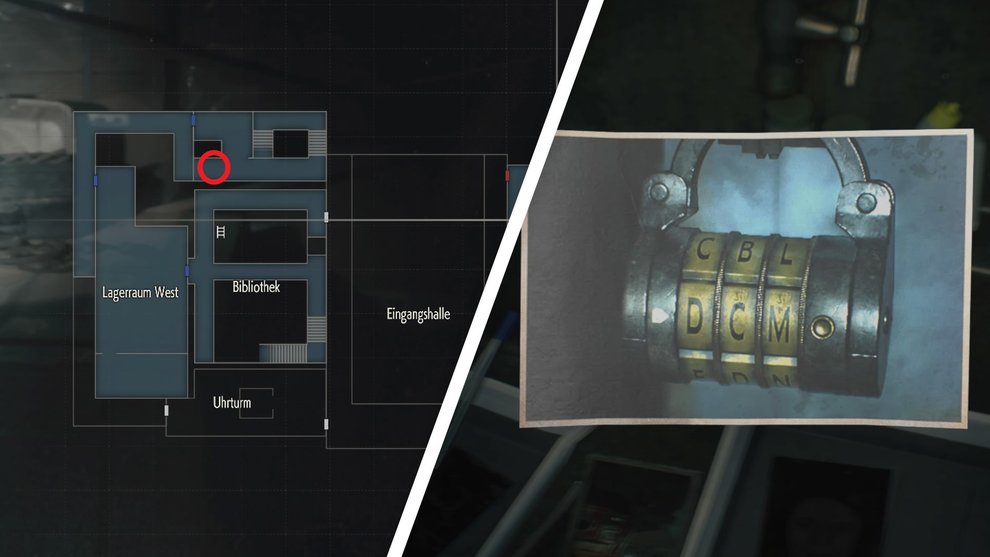 In Resident Evil 2 gibt es löblicherweise die Komfortfunktion, dass jeder Tresor und jedes Kombinationsschloss auf euer Karte markiert werden, sofern ihr es einmal untersucht habt. Achtet dann einfach auf die Ausrufezeichen auf der Karte, die euch die entsprechenden Safes markieren. So könnt ihr sie später leicht wiederfinden.